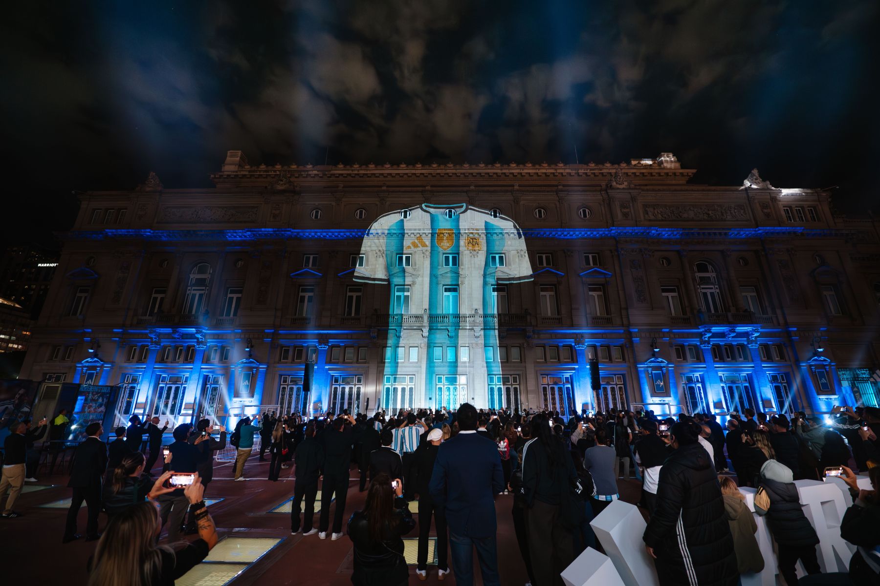 Anoche, los más de 300 invitados disfrutaron de un impactante video-mapping sobre la fachada del teatro que mostró imágenes icónicas de los 3 mundiales ganados por la Selección, en línea con la inspiración de la nueva camiseta, que posee 3 tonos de celeste tomados de las camisetas de 1978, 1986 y 2002. El espectáculo se completó con un show musical en el que la Orquesta del Teatro Colón interpretó canciones populares argentinas de cada uno de los años mencionados.